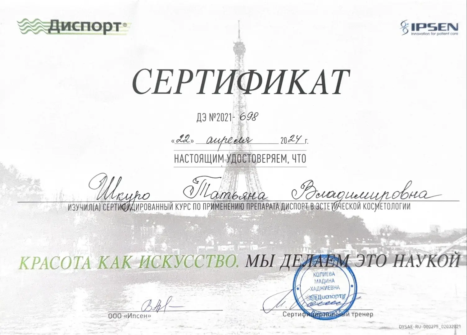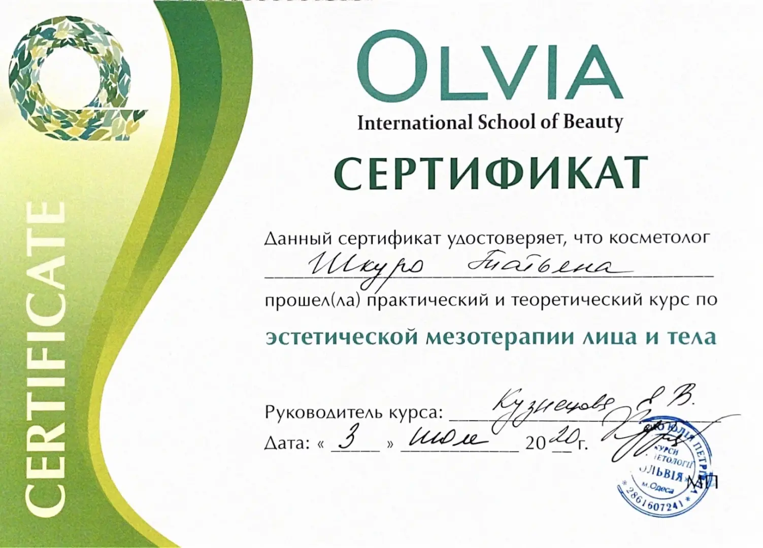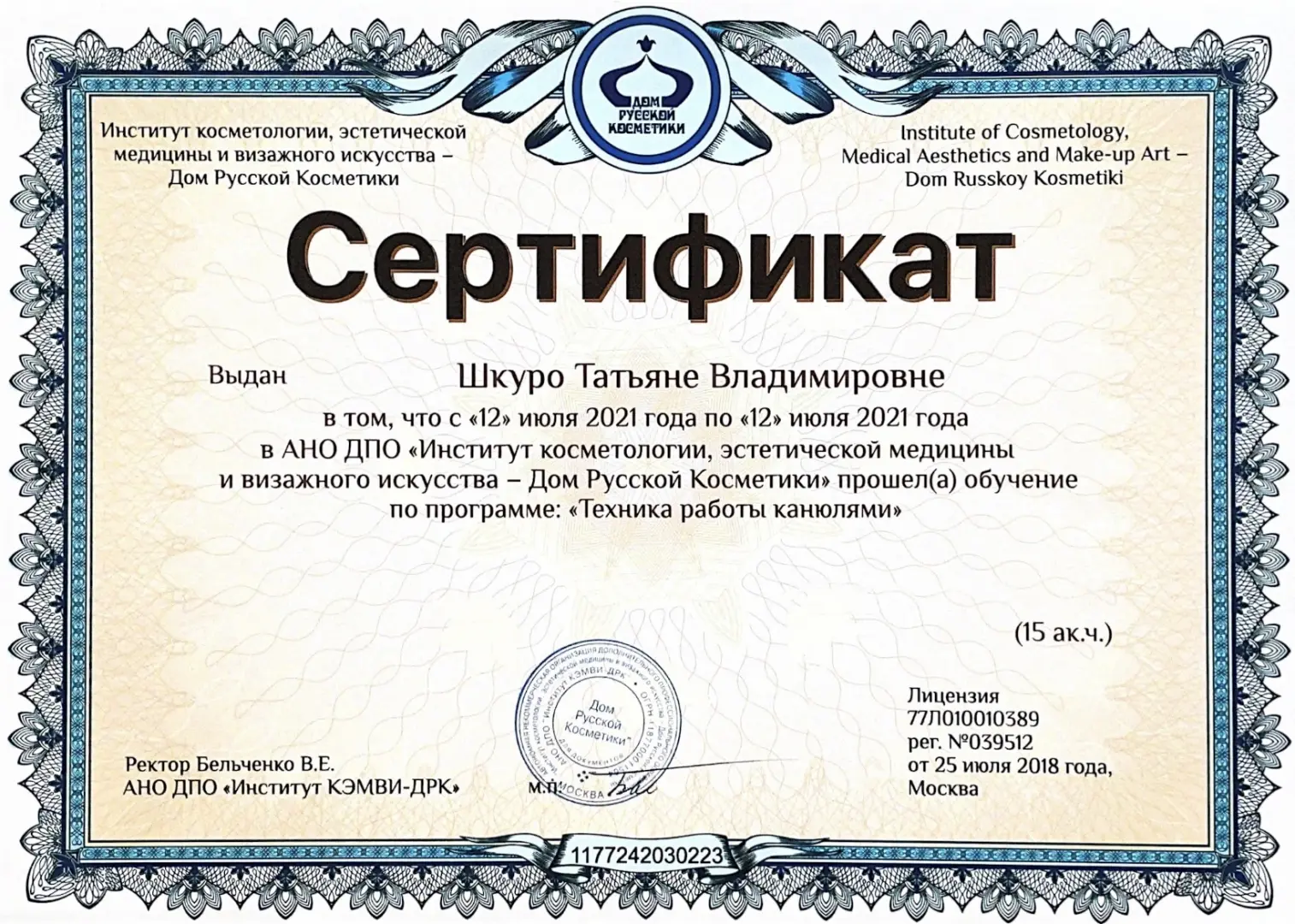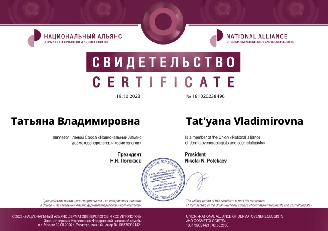 - Член Национального альянса дерматовенерологов и косметологов